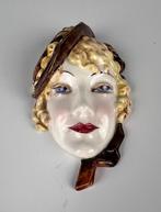 - Mask - Keramos - Oostenrijk - 1920-1930 - Rudolf Podany -Polychroom aardewerken miniatuur wandmasker ontworpen door rudolf podany voor keramos, in art deco-stijl, afkomstig uit wenen, oostenrijk; 9 cm hoog, 6 cm breed, 250 g, in goede staat met kleine ouder