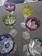 17 mrt 26HVBGent - 2 gekleurde glaasjesVintage val saint lambert kristallen wijnglazen, waarschijnlijk uit de berncastel-serie, bekend om hun geslepen "cut-to-clear" techniek 2stuks van 13cm hoog op te halen in wuustwezel (zelf iOphalen