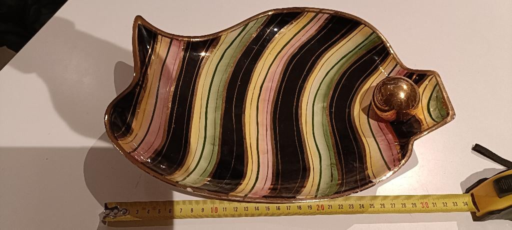- H. Bequet keramisch middenstuk in QuaregnonH. Bequetkeramiek in quaregnon in de vorm van een vis, daterend uit de jaren 50, draagt het serienummer 477 breedte 26 cm, diepte 20 cmOphalen of Verzenden