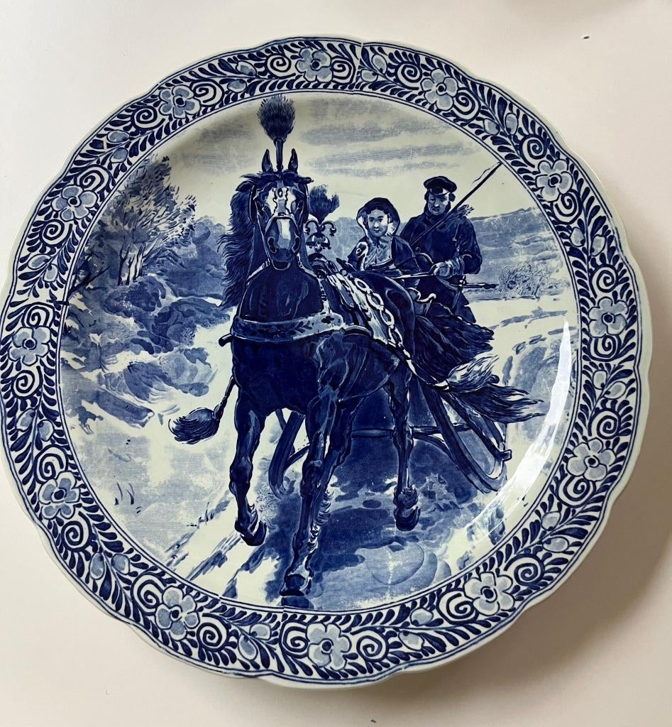 - Groot bord Delfts Blauw 40CM Petrus Regout AntiekGroot bord delfts blauw 40cm petrus regout &co made in holland - maastricht 19de eeuw perfecte staat dit zeldzame wandbord is in het midden gedecoreerd in blauwtinten met een stel op een koets (frOphalen of Verzenden
