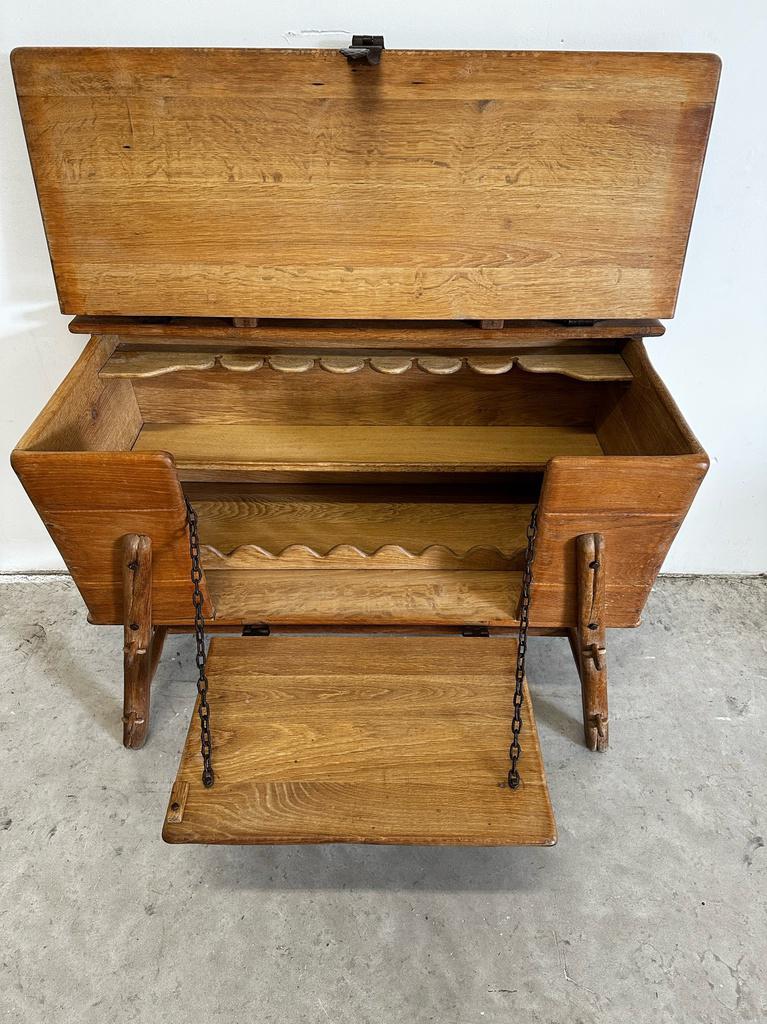 26 mrt 26PatrickMerelbeke+Deel ZwijnaardeBuffetkastOphalenMerelbeke+Deel Zwijnaarde26 mrt 26 - Antieke eiken barkast / kistbank – jaren 40Mooie, originele barkast van massief eikenhout. Dit meubel is handgemaakt en heeft een warme, rustieke uitstraling. De voorkant klapt open en wordt ondersteund door kettingen, waardoor je een handig wOphalen