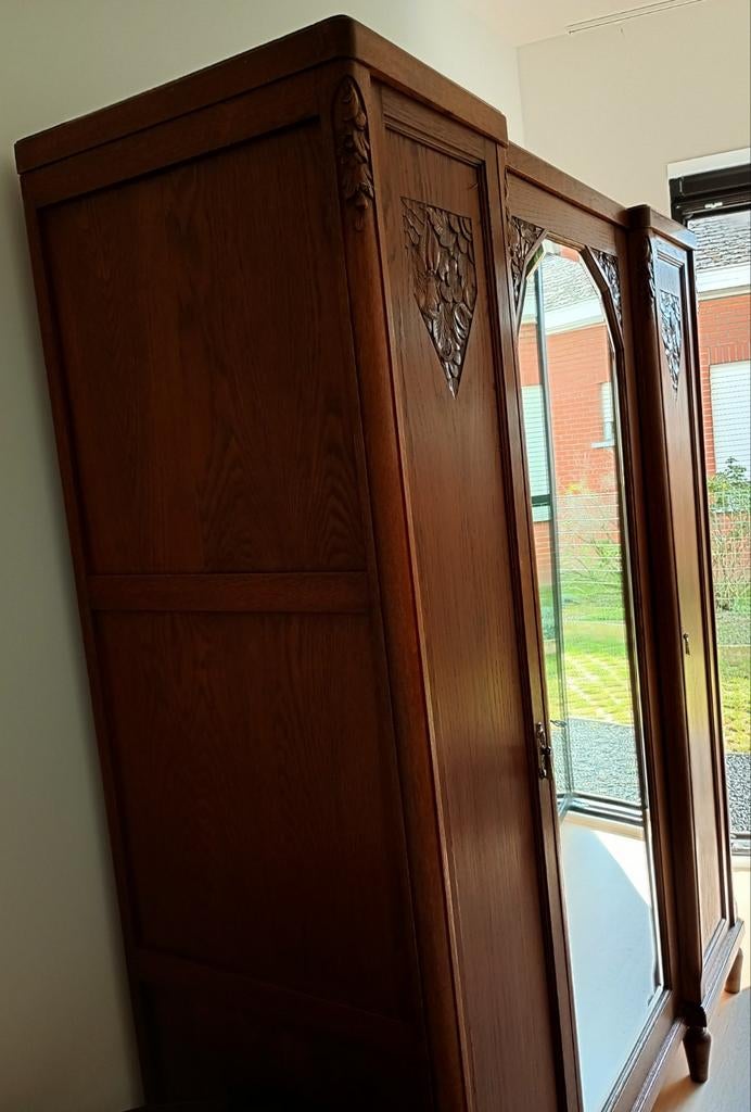 EergisterenGillianMechelen - Art Deco Kast in zeer goede staatPrachtige art-deco kast in massief eikenhout in zeer goede staat voorzien van 3 sleutels. Breedte : 120 cm diepte : 45 cm hoogte : 112 cmOphalen
