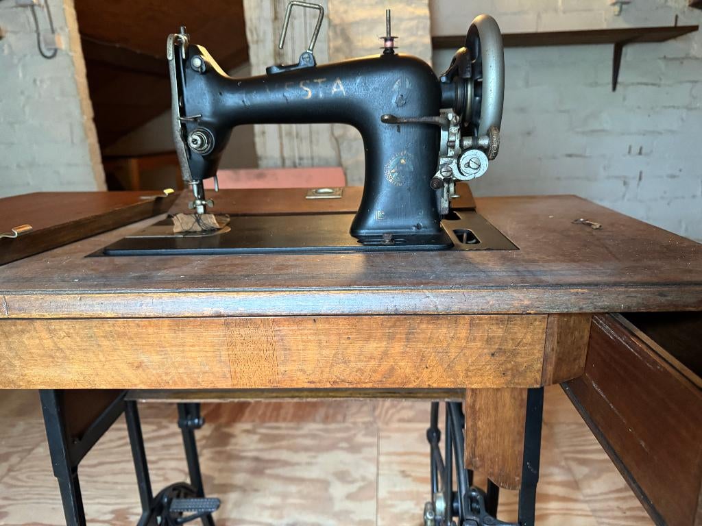 - Antiek naaimachine.Antiek naaimachine handdraaier. Houten voet met inlegwerk. Bouwjaar +/ 1910 werkt volledig en is in goede staat. Voor meer inlichtingen tel.: 0477/ 34 58 91 Ps.: Kijk ook eens naar mijn andere zoekertOphalen