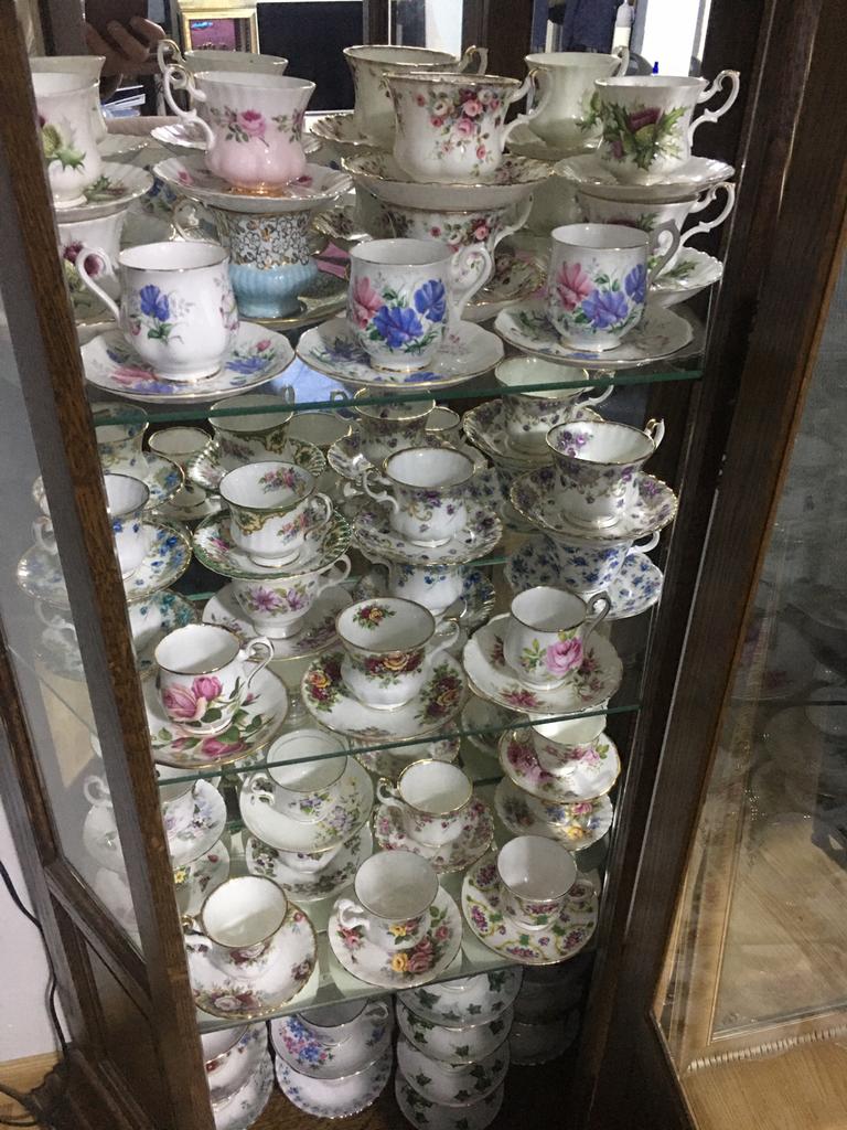 - Ca 90 kopjes Royal Albert verzamelingEngelse porselein worden verkocht wegens andere gedachten kopjes met ondertassen bijna 200 stuks samenOphalen