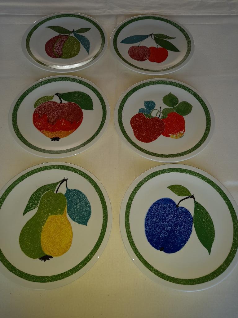 18 nov 24deschepper eddyLedegem - Vintage Gallo Piroschka borden van Villeroy & Boch - 70´sPrachtige vintage set borden van villeroy & boch. Serie: gallo piroschka. 6 Platte borden van 23,5 cm 6 dessertborden van 19 cm 5 schoteltjes van 14 cm. Gemerkt met gallo stempel, piroschka, handgOphalen of Verzenden