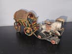 - Hausser - Speelgoed - 1940-1950 - DuitslandPrachtige vintage speelgoed paardenkar, vermoedelijk uit de jaren '40 of '50. De kar is gemaakt van metaal en tin en toont twee paarden die een kar trekken met een soldaatfiguur en een stoffen