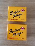VandaagTopadvertentieCatawikiHeel België - Vintage - Speelgoed - 1980-1990 - JapanVintage showatijdperk uit japan 24-delig kantoorrubberstempelset met houten handvatten, twee dozen en stempels voor (paid leave) en (official), ongebruikt deadstock in originele verpakking, stempels c