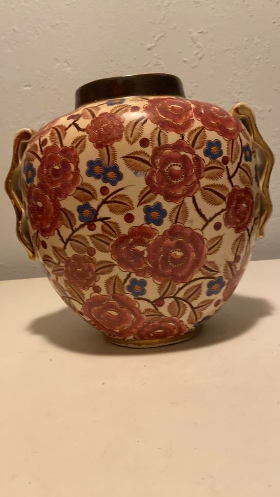 5 apr 26marleenSint-Martens-Voeren - Art nouveau vaas van Catteau voor BochVroege catteauvaas (art nouveau) charles catteau, boch frères keramis, circa 1910 modelnummer 268, decor bfk1. Het is een relatief groot model (40cm hoog)Ophalen of Verzenden