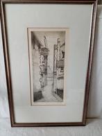 29 jun 25FMMBonheiden - Litho/Kopergravure door grafisch ontwerper Wim Van Kuyck 48/Litho kopergravure van de belgische graficus wim van kuyck (antwerpen) voorstellende de smalste straat van vlaanderen/lier "begijnhof" uit de jaren 1982/84 glazen lijst in perfecte staat gemOphalen