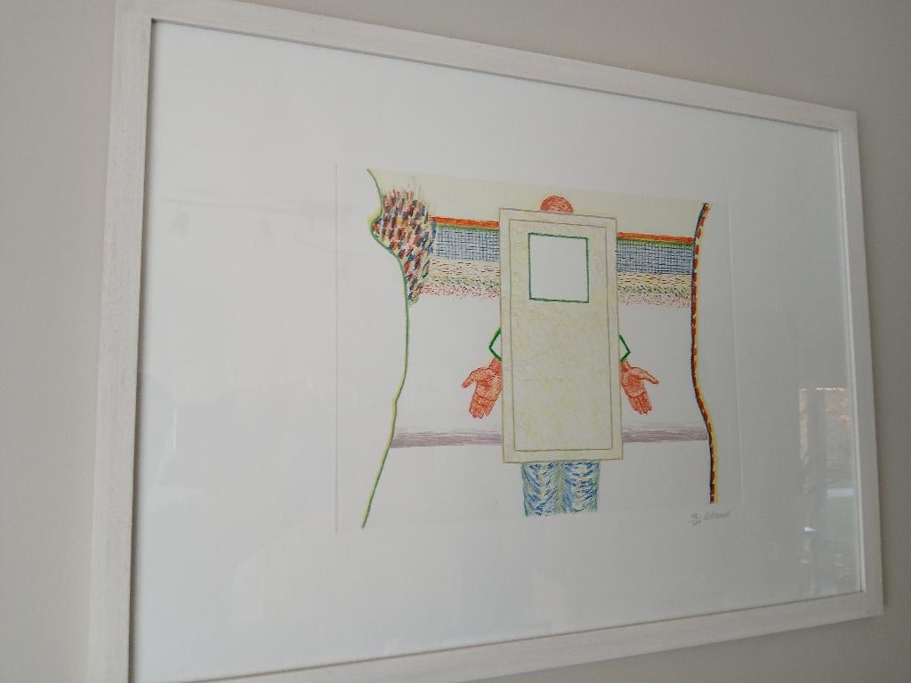 25 mrt 26SimonASint-Jans-Molenbeek - Litho Roger RaveelMooie litho van roger raveel ‘diep nadenken ‘ goed ingekaderd en getekend. Certificaat. Staat in het boek van het grafisch oeuvre van roger raveelOphalen