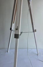 31 mrt 26CatawikiHeel België - Staande lamp - Chroom, HoutOntwerp nederlands ontwerp vloerlamp in industriële stijl, wit driekoppig pootje met chroom en hout elementen, verstelbaar van 105 tot 150 cm hoog, 60 cm diepte en 65 cm breed, gewicht 7 kg, met een g