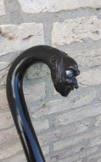 Antieke wandelstokken hebben vaak unieke materialen en ontwerpen die een verhaal vertellen. Veelgebruikte materialen zijn hout, ivoor, en soms zelfs edelmetalen zoals zilver. De vorm en details, zoals uitgesneden decoraties of inlegwerk, kunnen variëren afhankelijk van de periode en regio waarin ze gemaakt zijn.
