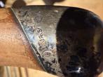 Om een antieke wandelstok goed te onderhouden, is het belangrijk om regelmatig het hout en andere materialen te reinigen met een zachte, droge doek. Zorg ervoor dat je geen agressieve schoonmaakmiddelen gebruikt. Af en toe kan een speciale houtolie helpen om het hout te voeden en te beschermen tegen uitdrogen.