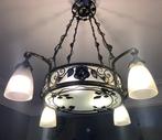 Art Nouveau-lusters staan bekend om hun organische vormen en vloeiende lijnen. Ze zijn vaak versierd met natuurlijke motieven zoals bloemen en bladeren. Daarnaast worden ze vaak gemaakt van materialen zoals glas en brons, met kleurrijke tinten die een warme sfeer creëren. De details en ambachtelijke afwerking maken deze lusters uniek en herkenbaar.