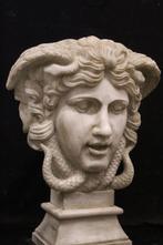 Beeldhouwwerken in Carrara marmer hebben een typerende elegantie en verfijning. Dit marmer staat bekend om zijn pure witte kleur met subtiele grijze aders. De fijne structuur en de mogelijkheid om gedetailleerde uitsneden te maken, maken het perfect voor intricate ontwerpen zoals standbeelden, borstbeelden en decoratieve elementen. De glans van het gepolijste marmer geeft elk beeld een luxe uitstraling, waardoor ze vaak als statementstukken worden gebruikt.