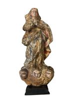 Een beeld van Maria heeft vaak enkele kenmerkende elementen, zoals een serene houding en een uitdrukking van medeleven. Je ziet vaak dat ze een kind vasthoudt, wat symbool staat voor haar rol als moeder. Ook zijn er vaak details zoals bloemen of een kroon die haar puurheid en heiligheid uitdrukken. Het gebruik van zachte lijnen en heldere kleuren draagt bij aan de uitstraling van het beeld, wat bijdraagt aan het spirituele gevoel.