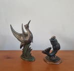 Om ervoor te zorgen dat je antieke vogelbeeldjes goed blijven, is het belangrijk ze regelmatig af te stoffen met een zachte, droge doek. Vermijd agressieve schoonmaakmiddelen, omdat deze de afwerking kunnen beschadigen. Bewaar ze op een plek waar ze niet blootgesteld worden aan direct zonlicht of extreme weersomstandigheden, zoals hoge luchtvochtigheid. Als je ze tentoonstelt, zorg er dan voor dat ze goed stabiel staan, zodat ze niet omvallen en breken.
