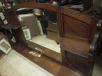 Grote achterwand met spiegel van een café interieur. Totale afmetingen 180 breed en 223cm hoog. Bovenstuk met spiegel : 115cm hoog en 180 breed. Onderstuk om de wand op te plaatsen .108Cm hoog en 180cm breed. Onderaan ,plaatste grootvader steeds zijn...