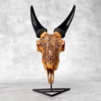 EergisterenDanich2017Ranst - Sans prix de réserve - Crâne authentique de chèvre noir avecCapra aegagrus spécimen, un crâne de chèvre noir balinais gravé à la main et authentique avec cornes sculptées, pesant 1300 g et mesurant 38 cm de hauteur sur 22 cm de largeur et 18 cm de profondeur,