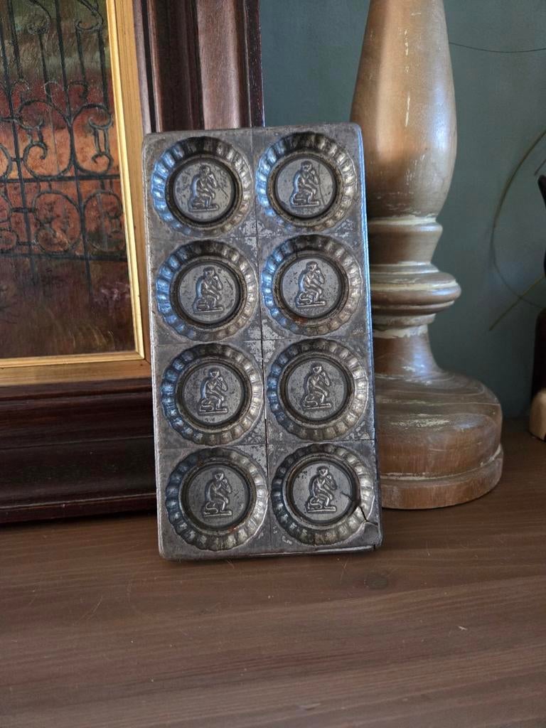 9 apr 26WNArtGent - Oude chocoladevorm ondeugend ventjeOude metalen, verzinkte (gegalvaniseerde) chocoladevorm in de vorm van een ondeugend uitziend mannetje. In zeer goede staat. 11,5Cm hoog.Ophalen