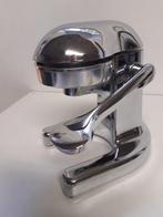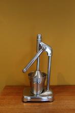 Voor het reinigen van een antieke citruspers is het belangrijk om voorzichtig te werk te gaan. Gebruik een zachte spons en afwasmiddel om restanten van sap te verwijderen. Vermijd schurende middelen, omdat deze het oppervlak kunnen beschadigen. Laat de citruspers goed drogen om roestvorming te voorkomen.