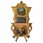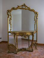 Antieke consoles met spiegels zijn vaak gekenmerkt door hun unieke ontwerpen en luxe afwerkingen. Ze worden meestal gemaakt van hout en hebben vaak intricaten details zoals snijwerk of vergulding. De spiegels zijn vaak in een prachtige omlijsting ingebed die de elegantie van het geheel versterkt. Deze meubels stammen vaak uit verschillende tijdperken en kunnen variëren in stijl, van Barok tot Lodewijk XVI.