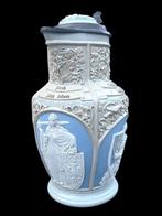 Duitse bierpullen zijn vaak prachtig versierd met traditionele motieven zoals edelstenen, scènes uit de Duitse folklore, of afbeeldingen van beroemde bezienswaardigheden. Vaak zie je ook handgeschilderde elementen en complexe gravures. De materialen variëren van glas en aardewerk tot tin en keramiek, elk met een eigen charme en esthetiek. Deze unieke ontwerpen maken het tot een veelzijdig verzamelobject dat ook als decoratie kan dienen.
