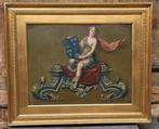 4 nov 25VACAS 2de HandsAssenede - Franse school (XIX) - AlegoriaAlegoria, een schilderij uit spanje uit de 19e eeuw in olie op doek van escuela francesa (xix), met een zittende vrouwelijke figuur op een ornamentale architectonische decoratie en een blauw schild me