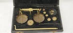 VandaagTopadvertentieCatawikiHeel België - india - Muntbalans - goudsmid - Verguld messingArt nouveau weegschaal-etui uit india, circa 1930–1940, van koper, messing (gepatineerd), hout en stof, met een fluweren binnenkant en vijf gewichtjes waaronder meestal ontbrekende 1 gram, ronde gewic