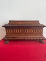 In gotische kasten zie je vaak hoge, spits toelopende bogen en rijke decoraties. De deuren zijn meestal versierd met houtsnijwerk of metalen accenten die thema's van de natuur of religie uitbeelden. De verticale lijnen en de constructie van de kasten brengen een gevoel van hoogte en grandeur met zich mee, wat typisch is voor de gotische stijl. Dit creëert een uitgesproken en indrukwekkend meubelstuk in elke ruimte.