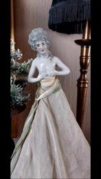 Half dolls zijn vaak gemaakt van porselein of bisquit, een soort ongeglazuurd porselein dat een matte afwerking heeft. Sommige exemplaren kunnen ook details van andere materialen bevatten, zoals stof voor kleding of spiegel voor een elegante uitstraling. Het gebruik van verschillende materialen voegt karakter en charme toe aan elk stuk.