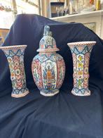 Het onderhouden van antiek keramiek, zoals kaststellen, is vrij eenvoudig maar vereist voorzichtigheid. Probeer het stuk regelmatig af te stoffen met een zachte droge doek. Vermijd agressieve schoonmaakmiddelen die het glazuur kunnen aantasten. Als je het moet reinigen, gebruik dan een licht vochtige doek en laat het goed drogen. Het is ook aan te raden om het in een stabiele omgeving te plaatsen, weg van direct zonlicht of vocht.