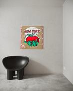 Een Keith Haring kunstwerk is uniek vanwege zijn herkenbare stijl, gebaseerd op eenvoudige lijnen en levendige kleuren, die een gevoel van beweging en energie uitstralen. Haring's gebruik van symboliek en iconografie, zoals zijn karakteristieke 'dancing figures' en 'radiant baby', maakt zijn werk onmiddellijk herkenbaar. Bovendien heeft Haring een sterke sociale en politieke boodschap die door zijn kunst heen spreekt, wat het werk niet alleen visueel maar ook philosophisch waardevol maakt.