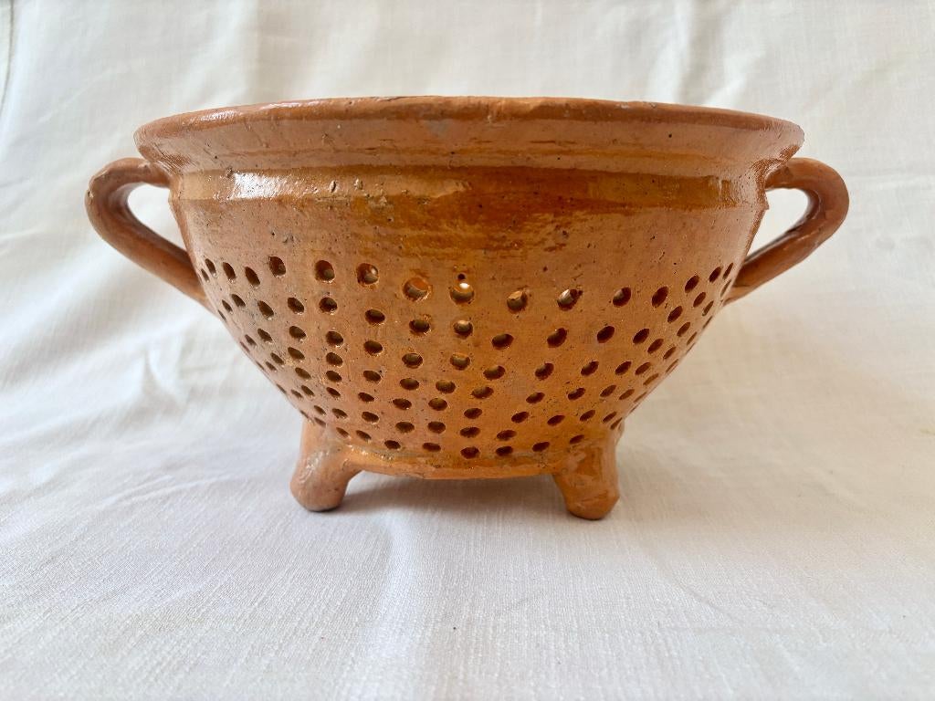 2 apr 26Interior-ItemsBeernem - Antiek terracotta vergiet (18de eeuws)Antiek vergiet in aardewerk (geglazuurd terracotta) met handvaatjes en drie pootjes onderaan. Groot en prachtige kleur. Waarschijnlijk afkomstig uit frankrijk en 17 of 18de eeuw. Afmetingen: diameterVerzenden