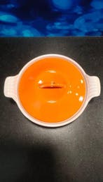 - Le Creuset - Braadpan - Hoogwaardig geëmailleerd gietijzerPrachtige mini cocotte van geëmailleerd gietijzer van hoge kwaliteit, nooit gebruikt.frans prestigieus merk le creuset.prachtige geëmailleerde oranje vintage (de kleuren kunnen variëren afhankelijk va