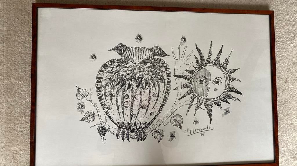 2 apr 26TopadvertentieCatawikiHeel België - Zelfportret karikatuur kunstenaar LecomteZelfportret willy lecomte ‘86 tekenaar graficus tienen bekend om karikaturaal werk kader mahonia kleur hout 55x36 cm perfecte staat op te halen linkeroever antwerpenOphalen