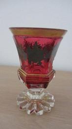 Authentiek Moser glas is vaak te herkennen aan de hoogwaardige afwerking en het heldere, zware kristal. Let ook op het Moser-logo, dat meestal op de bodem van het stuk te vinden is. Het glas heeft een unieke glans en kan ingewikkelde patronen en gravures bevatten, die zorgvuldig met de hand zijn gemaakt.
