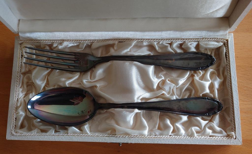 14 apr 26TopadvertentieCatawikiHeel België - verzilverde lepel en vork (OKA 100)Ongebruikt, met mooi patina in mooi doosje lepel: 68 gram, 20.5Cm lang vork: 57 gram, 20.8Cm langOphalen of Verzenden