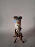 Opaline glas is vooral bekend om zijn ondoorzichtige en melkachtige uitstraling. Het heeft vaak een gladde textuur en kan versierd zijn met stijlvolle motieven, zoals bloem- of bladdecoraties. Het is meestal dikker dan normaal glas en kan variëren in kleur, hoewel de lichte tinten het meest kenmerkend zijn.