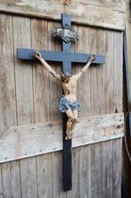 - Figuur - Cristo crocifisso - Papier-maché - Hout - 123 cmHouten kruisbeeld, met christus in cartapesta uit de 700, van opmerkelijke vakmanschap en fijnheid, heel mooi de laklaag, maar helaas moet deze nog worden aangepast, slechte toestand van conservering!
