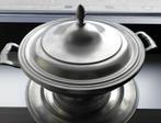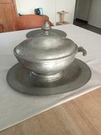 Wat zijn de kenmerken van een antieke soepterrine van tin?