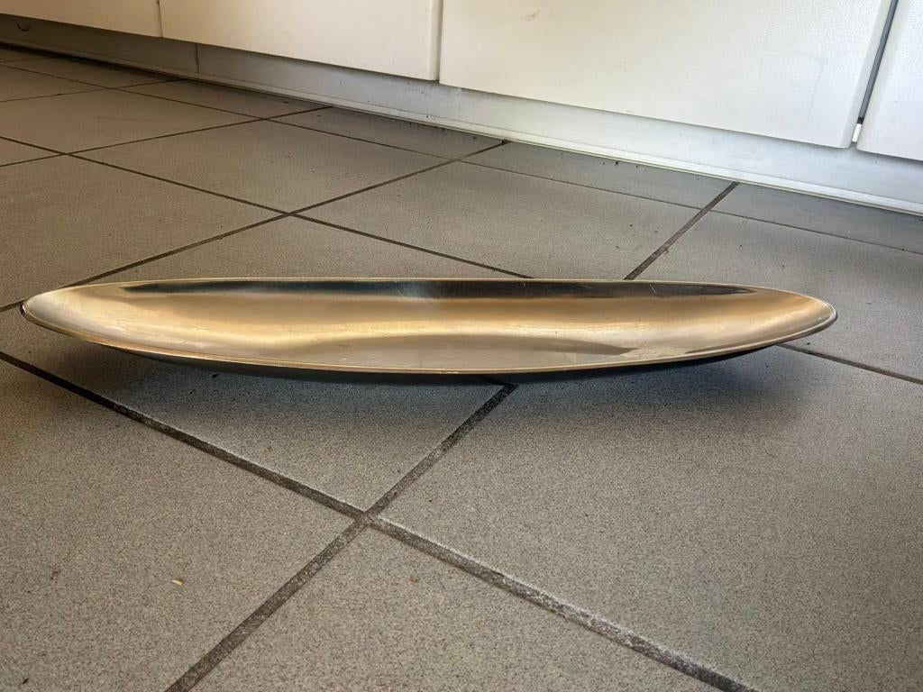 - Stijlvolle serveerschaalGrote inox schaal van 47 cm. Tijdloos en strak design, ideaal als decoratief object of serveerschaal. In zeer goede staat.Ophalen