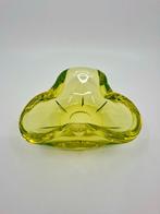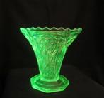 Vaselineglas is uniek door zijn doorzichtige, geelgroene kleur, die ontstaat door het gebruik van uraniumdioxide tijdens het smelten van het glas. Dit type glas heeft een schitterende uitstraling, vooral onder UV-licht, waar het prachtig oplicht. Het wordt vaak gebruikt voor decoratieve objecten, zoals vazen, schaal, en kunstwerken. Deze eigenschap maakt het aantrekkelijk voor esthetisch gebruik in zowel moderne als klassieke interieurs.