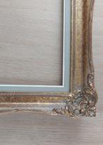 Een verguld kader heeft vaak een glanzende afwerking die het goudachtige uiterlijk benadrukt. Het kan details bevatten zoals ingekerfde patronen, versieringen of richels die de elegantie van het kader versterken. Meestal is het gemaakt van hout of een ander materiaal dat bedekt is met een dunne laag goud. Dit zorgt voor een luxe uitstraling die perfect past bij antieke of klassieke kunstwerken.