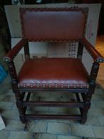 18 apr 26J.Hoboken - Antieke kasteelstoel, kerstman zetel, bruinrood meubelAntieke kasteelstoel, kerstman zetel, bruinrood skai ledere meubel. 95H x 60 x 50d.Ophalen