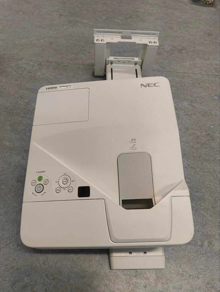 - Nec projector ultra - short throw.Ik verkoop een nec ultra short throw beamer (type np - um280w. De lamp is aan vervanging toe. Voor de rest werkt de beamer perfect. Kabels en afstandbediening zitten er bij. Mag weg voor een prijsje.Ophalen
