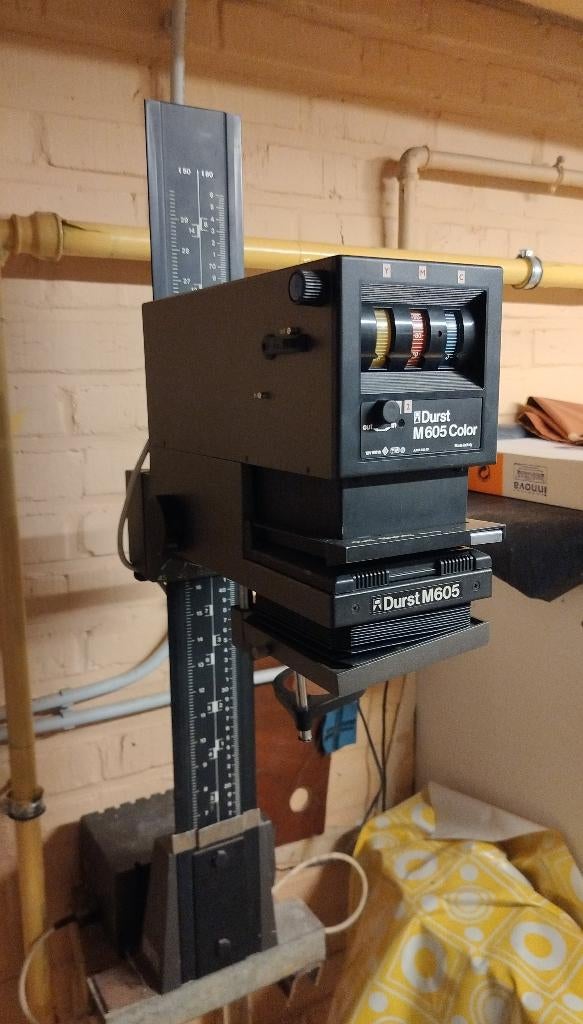 Een vergroter werkt door een lichtbron te gebruiken die door de film of negatief schijnt en de beelden vervolgens op fotopapier projecteert. Dit gebeurt in verschillende stappen: je plaatst het negatief in de vergroter, stelt de juiste vergrotingsfactor in en sluit de kleppen voor licht wanneer je klaar bent om te belichten. Het is een heel nauwkeurig proces dat de juiste timing en belichting vereist om de beste resultaten te behalen.