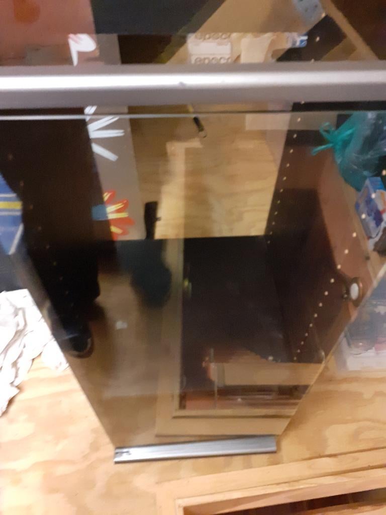 - stereomeubelStereomeubel met glazen deur en glazen bovenstuk met lichte gebruikschade (zie foto's) enkel op te halenOphalen