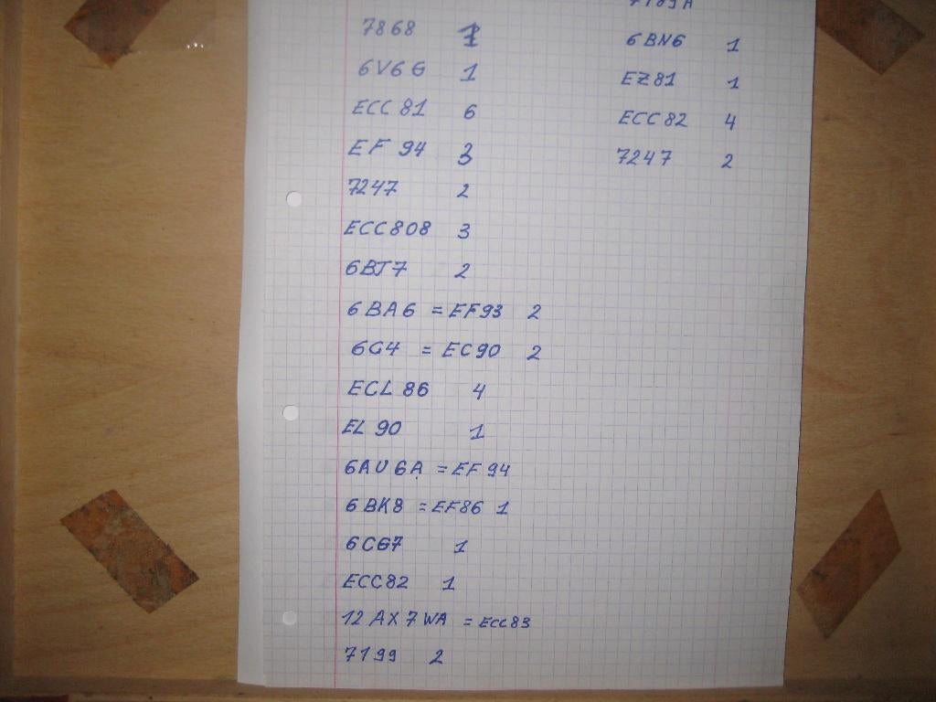 28 mrt 26jacko2010Glain & Partie Ans - ventielen 6L6GC buizen voor versterker6 lampen type 6l6gc en een e281 van een peavey mace die 15 jaar ongebruikt is gebleven (transfo hs) 2 fender, 1 silvertone, 1 sylvania, 1 radiatron, 1 eltron + 1 eltron + 1 onbekend merk + 1 onbekendGebruikt Ophalen