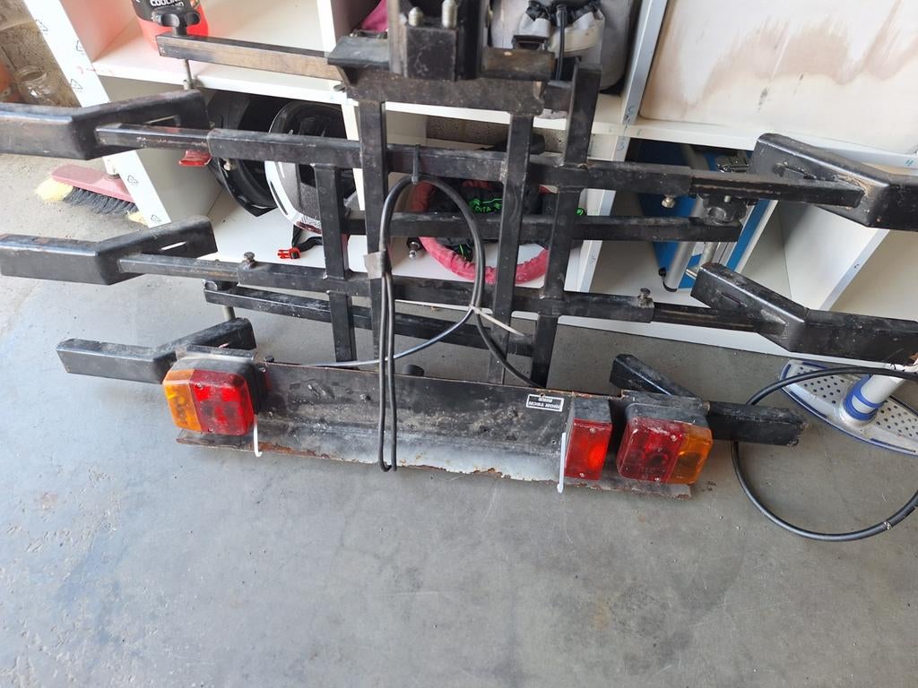 5 apr 26GeorgesTorhout - Kantelbaar fietsenrekFietsenrek spinder voor 2 fietsen voor op de trekhaak te bevestigen in 2 delen en kantelbaar voor gemakkelijk in de koffer te kunnen terwijl de fietsen er op staan. Nog in perfecte staatGebruikt Ophalen